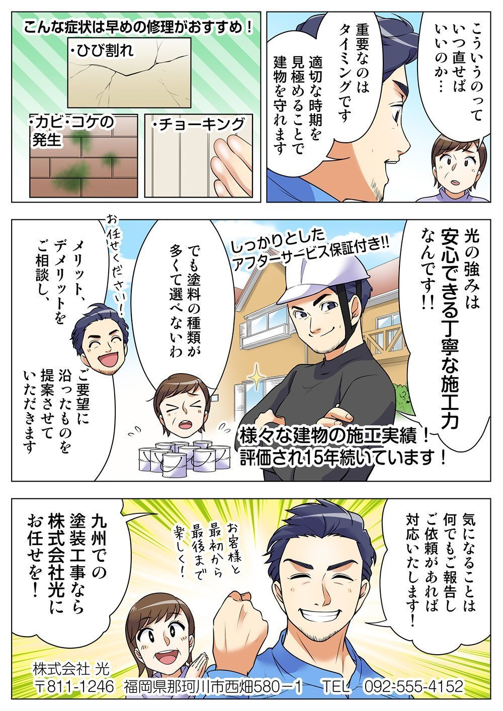 福岡県那珂川市の光は、外壁・屋根・内装などの塗装工事・防水工事を手掛ける専門業者です。エイジング塗装や木部・鉄部塗装などにも幅広く対応。お客様目線に立った施工を強みとしております。塗装 工事、防水工事に関してお困りの際は、ぜひ私たち光までご相談ください。