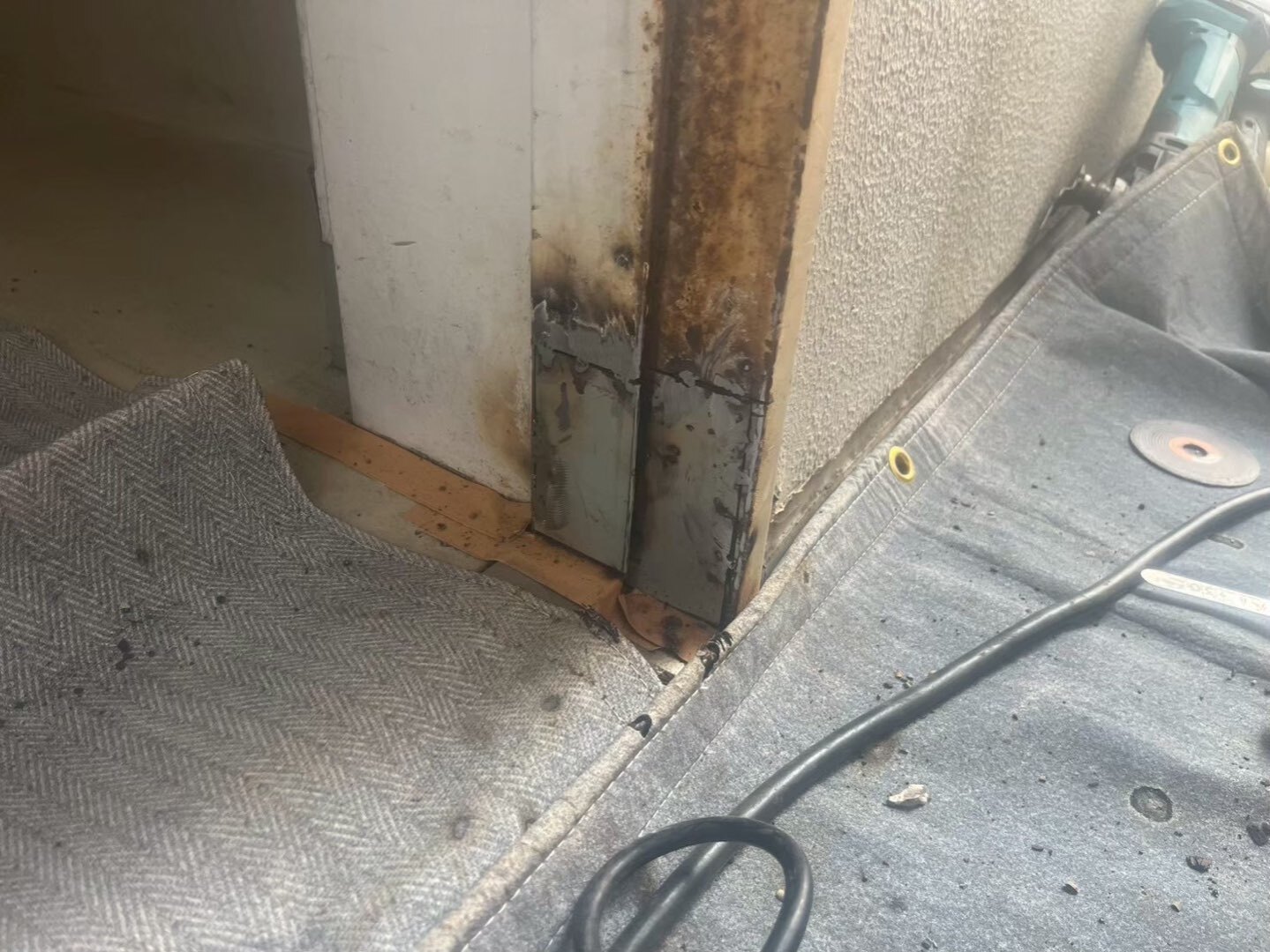 金属プレートを溶接し、反り上がった部分と錆でボロボロになっていた箇所を新設しました👇🏻